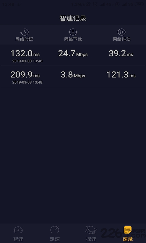 3. 如果有智速测速记录,坚果智速最多能查看到50条历史测速记录。