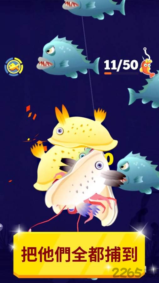 2、为了获得更高得分,当鱼钩上升时,你需要手动操控鱼线,以增加捕获的鱼的数量。